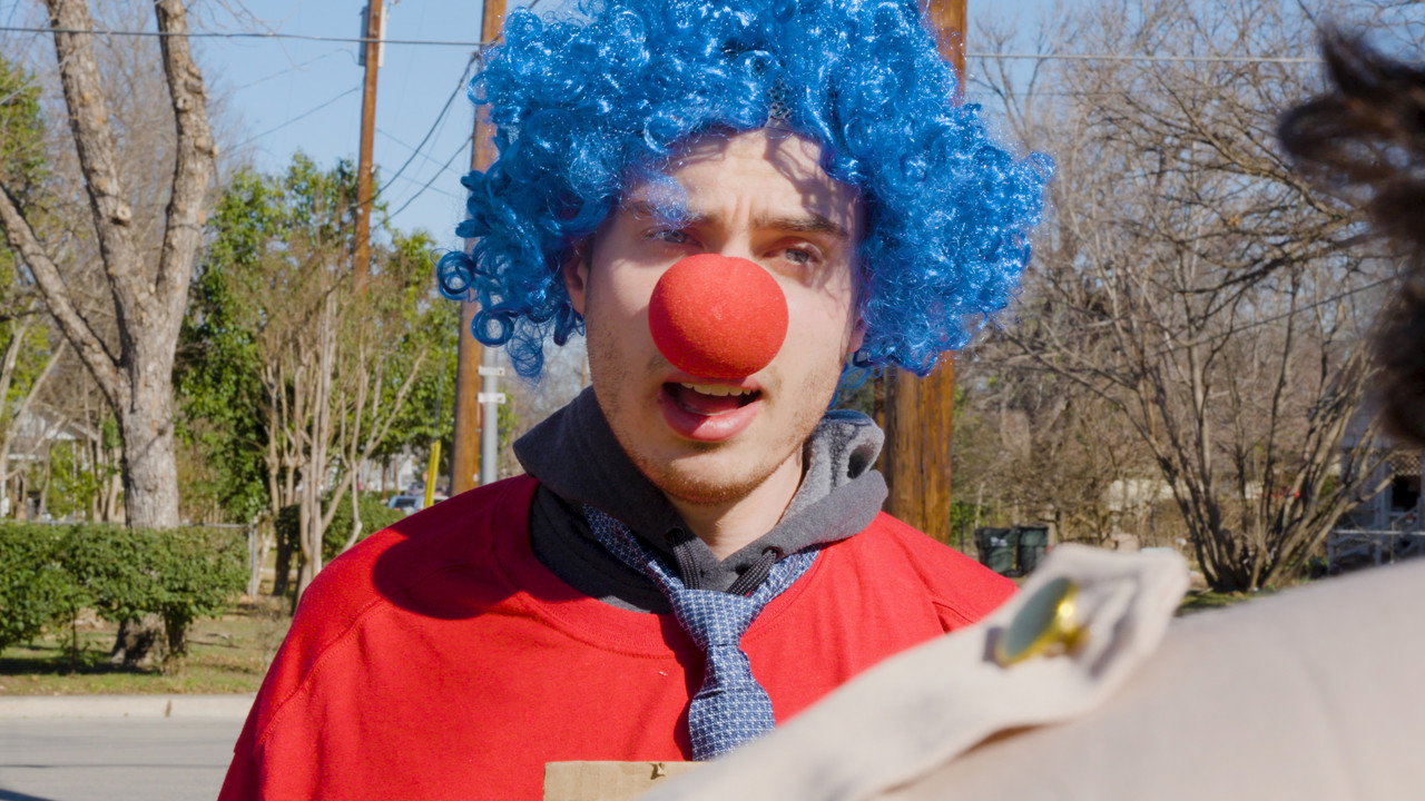A jewel thief finds refuge from the police through a jobless man with a clown costume.